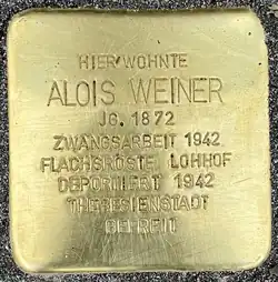 Zum Andenken an Alois Weiner wurde am 26. Oktober 2021 vor seinem ehemaligen Kaufhaus auf dem Gries ein Stolperstein vom Künstler Gunter Demnig verlegt.