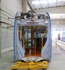 Grundsätzlich entspricht die Wagenkastenstruktur dem bei mehreren Citadis-Typen verwendeten Standard, es wird also überwiegend Aluminium verschraubt sowie genietet. Sowohl der Citadis 202 für Melbourne als auch der Citadis 302 für Rotterdam weisen jedoch nicht die typische Krümmung der Seitenwände auf. Außerdem sind bei beiden die Bodenplatten der Fahrwerksmodule vollständig und nicht nur teilweise aus Stahl geschweißt.[9] Die Längsfestigkeit des Rahmens beträgt standardmäßig 200 kN, bei den Citadis 302 der Linie T2 und Citadis 402 der Linie T3 der Straßenbahn Île-de-France jedoch abweichend 400 kN.[9][15]