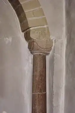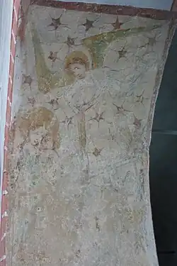 An zwei Arkadenbögen sind noch Reste der spätgotischen Wandmalereien erhalten. Sie sind in Al-fresco-Technik ausgeführt und stellen die Geburt Christi und Maria am Spinnrad mit einem Engel dar.