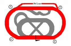Die Strecke verfügte über eine Oval-untypische Boxengasse, die an der Außenseite des Kurses auf der gegenüberliegenden Seite der Start-Ziel-Linie platziert war. Bei den Rennen der Grand National West wurde die Boxengasse jedoch gemäß der Vorgaben von NASCAR in das 1/4-Meilen-Oval verlegt, um den Zuschauern eine bessere Sicht auf die Boxenstopps zu gestatten.