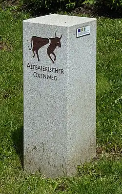 Der Altbaierische Oxenweg ist ein alter Handelsweg, auf dem im Mittelalter und in der Frühen Neuzeit jährlich Zehntausende von ungarischen Grauochsen nach Altbayern getrieben wurden.