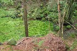 Rund 1 km westsüdwestlich des Bodendenkmals befinden sich in Richtung Lichtenau bei Schönthal drei an der Sauer gelegene Fischteiche und etwa 1 km südöstlich liegt östlich des Rickebachs die mittelalterliche Wehranlage Karlsschanze.