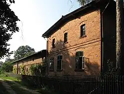 - Försterei mit Forsthaus, Pferdestall, zwei Scheunen und Erdkeller.