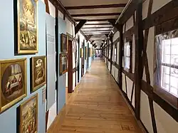 Der romantisch anmutende, von spätgotischen Fachwerkbauten mit Laubengängen umrahmte Innenhof entstand durch den Abbruch eines den Hof teilenden Gebäudes.