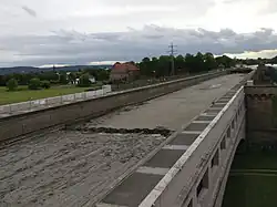Geleerte alte Fahrt zur Wartung, zu sehen ist im rechten Bereich ein Ablaufventil zur Weser, um die Brücke zu Wartungszwecken zu leeren. -