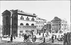 Das von Heinrich Gentz errichtete Münzgebäude bestand im Wesentlichen aus einem dem Werderschen Markt zugewandten Vorderhaus mit einem giebelbekrönten Mittelrisalit, einem schmalen, nicht genau in der Achse liegenden Hintergebäude und zwei Verbindungsarmen zur Herstellung des Zusammenhanges mit den alten Münzgebäuden in der Unterwasserstraße.[5]