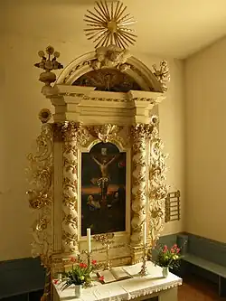 Im Jahr 1710 erwarb die Kirchengemeinde einen barocken Altaraufsatz, der einen steinernen Unterbau erhielt. Das Mensabild zeigt Christus und drei Jünger im Garten Gethsemane am Ölberg. Auf dem Altartisch befindet sich in einem üppig mit Weinlaubsäulen verzierten Rahmen ein Leinwandbild, über dem sich ein Lünettengiebel wölbt. Dieser ist mit einem vergoldeten Strahlenkranz als Symbol für das Auge Gottes bekrönt, seitlich daneben sind zwei Schmuckvasen angeordnet. Das Lünettenbild ist mit „C. Maes 1711“ signiert und zeigt die Auferstehung Christi, ihm zur Seite zurückweichende Soldaten.