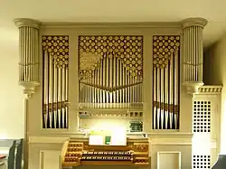 Die Labien der Prospektpfeifen sind aufwendig mit floralen Ornamenten verziert. Diese Arbeit stammt von der Mahlsdorfer Porzellanmalerin und Künstlerin Maria Hartwig.[10]
