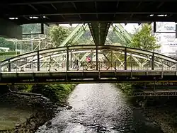Die Station Zoo/Stadion der Wuppertaler Schwebebahn befindet sich unmittelbar an dieser Brücke, die unter Denkmalschutz steht.[3]
