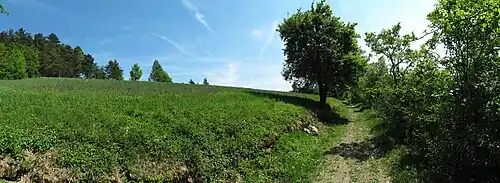 Es bestehen naturnahe Waldbestände und Halbtrockenrasen mit charakteristischen Steinriegeln mit typischen Tier- und Pflanzengesellschaften.[1] Auf den halboffenen Sukzessionsflächen wachsen unter anderem selten gewordenene heimische Orchideen wie das Breitblättrige Knabenkraut.[3]