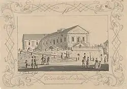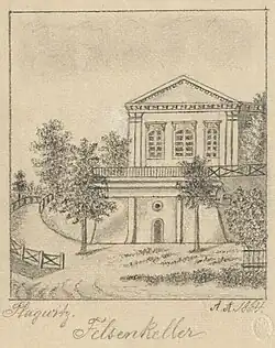 1844 wurde auf dem Kellergewölbe für Leipziger Ausflügler ein Restaurationssaal im klassizistischen Stil unter dem Namen Felsenkeller errichtet, der in den kommenden Jahrzehnten mehrfach erweitert wurde. Dabei entstand auf dem Areal auch eine kleine Parkanlage mit einem Pavillon. Der Keller wurde bis 1884 zur Bierlagerung genutzt, im Jahr 1886 erhielt die rückseitig gelegene Feldgasse den Namen Felsenkellerstraße.[1] 1889/1890 wurde auf dem südlich angrenzenden Grundstück der neue Felsenkeller errichtet, das große Konzert- und Ballhaus löste den alten Felsenkeller ab, der danach nur noch zu Lager- und Wohnzwecken genutzt wurde. Der bekannte Name wurde für den Neubau übernommen. 1906 wurde der Alte Felsenkeller an den Rat der Stadt Leipzig verkauft, der das Gelände anschließend unter anderem für die Städtische Laternenwache und die Leipziger Schüler-Werkstatt nutzte.[2]