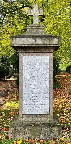 | Maria Margaretha Christiansen | 1807–1813 | Sandsteinsäule, die von einer ägyptischen Canope bekrönt. | ![]() | ||