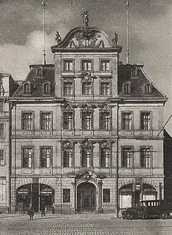 | 10 (alt) | Auf dem Grundstück befanden sich bis 1631 drei Häuser, wobei sich das Grundstück deutlich weiter in den Alten Markt hinein erstreckte. Das ganz vorne stehende hatte eine Grundfläche von 9 mal 4,5 Ellen. 1639 erwarb es der Rat von Sixtus Kram und gliederte die Fläche in das Gebiet des Marktes ein. Auch die beiden hinteren Grundstücke wurden der Fluchtlinie angepasst und die verbleibende Fläche als ein Grundstück geführt. Hinzu kam die Hälfte eines weiteren, zwischen Alter Markt 10 und Lödischehofstraße 13 gelegenen, Grundstücks, das Mathias Knüppel gehörte. Eigentümer eines der hinteren Grundstücke war 1631 der Schneider Andreas Sachse (falsch auch als Andreas Schosse bezeichnet). Von ihm erbte es Johann Sachse, der es 1639 an den Rat verkaufte. Die vordere Hälfte wurde Teil des Markts, die hintere ging an den Materialisten Johann Bartels, als Ersatz für die von ihm an die Stadt abgetretene Vorderhälfte seines Grundstücks. Eigentümer des anderen hinterlegenden Gebäudes war 1631 der Kramer Melchior Richter senior, der es an Johann Bartels vermietet hatte, der später Besitzer wurde. Richter senior verstarb 1637 und wurde von Melchior Richter junior beerbt. Sein Vormund war der Leipziger Buchhändler Samuel Scheibe, der sich 1637 an den Rat wandte und auf die Armut seines Mündels verwies. Er bat darum darauf zu achten, dass niemand unberechtigt die Stelle bebaut. Er hoffte, dass der gebrechliche Junge mit der Zeit Mittel finde, das Grundstück selbst zu bebauen. Tatsächlich erfüllte sich die Befürchtung des Vormunds. Noch 1637 bebaute Johann Bartels das Grundstück neu. Seine Witwe veräußerte das Haus 1639 für 200 Taler an den Fleischer Heinrich Krüger. Auch der Rat übersah die Rechtswidrigkeit und hatte noch 1639 mit Bartels einen Tauschvertrag. Letztlich wurde der Verkauf jedoch später für unwirksam erklärt und Melchior Richter junior wieder Eigentümer. 1652 verkaufte er, inzwischen Jurastudent, das Haus für 225 Taler an den Seidenkramer Arnd Köpke. Von ihm erwarb es 1658 für 350 Taler der Seidenkramer Joachim Dreyer. Dreyer vermietete einen im Haus eingerichteten Seifenladen ab 1667 für 30 Taler jährlich an Martin Nohr. Dreyer wurde zuletzt 1672 erwähnt. Im Jahr 1681 war der Seidenkramer David Müller Eigentümer, 1683 dann bereits seine Erben. Von diesen erwarb es 1687 der Handelsmann Jakob Giese für 800 Taler, der es 1716 für 1750 Taler an Gottfried Welcker veräußerte, der bis 1737 Eigentümer blieb. | ||