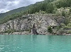 Auf der gegenüberliegenden Fjordseite befindet sich der Wasserfall Mordølefossen.
