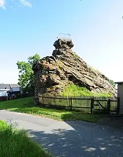 Im Bereich des Felsens befand sich einst die Burg Schöneck, von der keine Reste mehr erhalten sind, die jedoch durch archäologische Funde belegt ist. Das anstehende Gestein diente in früherer Zeit als Baumaterial.