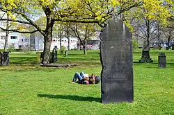 - Ludwig Christoph Heinrich Hölty (1748–1776), Dichter. Die Lage des Grabs ist unbekannt, stattdessen wurde 1901 von dem Bildhauer Otto Lüer das schöne Denkmal mit dem Medaillon-Porträt des Dichters von Karl Gundelach (nach einem zeitgenössischen Schattenriss) errichtet. Das Denkmal trägt die Gedenkverse von Nikolaus Lenau über Hölty: „Hölty, Dein Freund der Frühling ist gekommen. Klagend irrt er im Hause, Dich zu finden. Doch umsonst, sein klagender Ruf verhallt in einsamen Schatten.“