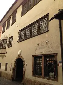 Kay[serlich] König[liches] Stadt Polizey amt – Aufschrift des frühen 19. Jhs. an der Fassade zur Dr.-Streiter-Gasse