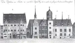 - ↑ Hans-Christian Riecken: Das Alte Rathaus in seinem letzten Jahrhundert. In: Das Alte Rathaus zu Halle (Saale). Hrsg. Kuratorium Altes Rathaus Halle (Saale) e. V., Mitteldeutscher Verlag, Halle 2008. ISBN 978-3-89812-497-3