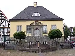 Das ehemalige kurkölnische Gerichtsgebäude ist ein eingeschossiger kubusförmiger Bau über einem hohen Bruchsteinsockel. Es ist über eine Freitreppe erschlossen und mit einem Walmdach gedeckt. Über dem Sprenggiebelportal zur Marktseite hin befindet sich ein Wappen mit der Bezeichnung 1716. Das Gebäude wurde in den Jahren 1983 und 2003 restauriert. Das Innere besteht aus einer Halle mit Seitenräumen und einem Kamin. Dem Eingang gegenüber, in einer Wandnische, steht die Steinfigur der Justitia. Sie ist ebenfalls mit 1716 bezeichnet.