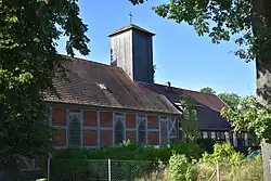 Baulich schließt das eingeschossige Pfarrhaus (Satteldach; Fachwerk mit Ziegelausfachung) auf der Ostseite der Kirche an. Dieses ist wahrscheinlich genauso alt wie die Kirche. Heute dient es als Gemeindehaus.[8] Auf der Nordseite steht ein eingeschossiges Wirtschaftsgebäude, auch als Stall bezeichnet (Satteldach; Fachwerk und Massivbauweise, Backstein und Feldstein). Beide stehen ebenfalls unter Denkmalschutz.[1]