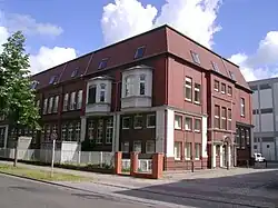 Das Grundstück in der Breitenbachstraße 33–36 (Lage) musste erst aufwändig aus- und umgebaut werden. Der Verwaltungssitz befand sich direkt an der Straße links neben dem Haupteingang. Im Keller wurde eine Kantine für die Mitarbeiter eingerichtet. Rechts neben dem Haupteingang waren die Telefonzentrale, die Werkfeuerwehr, die Werkstatt, sowie eine Umspannstation zur Umsetzung der angelieferten Mittelspannung von 30.000 Volt auf 6.000 Volt. Hinter dem Verwaltungsgebäude entstanden die Hallen 1–8.[3]