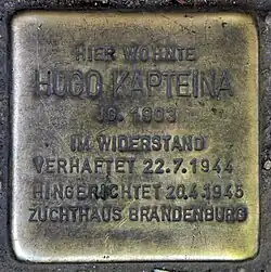 - ↑ Stolperstein für Hugo Kapteina ( vom 12. Februar 2013 im Webarchiv archive.today), abgerufen am 1. März 2011.