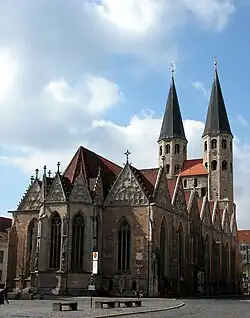 Der Gründungsbau der Altstädter Pfarrkirche St. Martini wurde um 1190–1195 in Anlehnung an den Bauplan des Domes begonnen. Die zunächst dreischiffige romanische Pfeilerbasilika wurde im Zeitraum von etwa 1250 bis 1400 als gotische Hallenkirche umgebaut. Um 1400 erfolgte die Erweiterung durch ein Chorpolygon, 1434 wurde die an die Südseite angebaute Annenkapelle geweiht. Nach Zerstörungen während des Zweiten Weltkriegs wurde die Martinikirche 1956 wieder eingeweiht, erhielt jedoch zunächst für ihre zwei je 60 m-hohen Türme nur kleine, „stumpfe“ Helmspitzen. Eine Restaurierung der kriegsbedingt geschwärzten Außenfassade erfolgte in den Jahren 1979 bis 1987. Den Originalen nachgebildete spitze Turmhelme erhielt die Kirche schließlich wieder am 15. Oktober 1980.