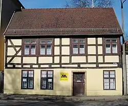 - Nr. 13: 3-gesch. barockes hellgelbes Wohnhaus (D) früher mit Konsum-Teppichladen, saniert 2010
