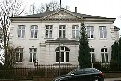 Das zweigeschossige Wohngebäude in Mauerbauweise wurde im klassizistischen Stil errichtet. Die Fassade ist verputzt (teilweise Quaderputz) und hat derzeit einen beigen Anstrich. Das Gebäude besitzt mehrere seitliche Anbauten sowie einen mittigen Erker zur Straßenfront hin. Hierüber befindet sich im ausgebautes Dachgeschoss (Walmdach) ein flacher und mit Ornamenten versehener Zwerchgiebel.