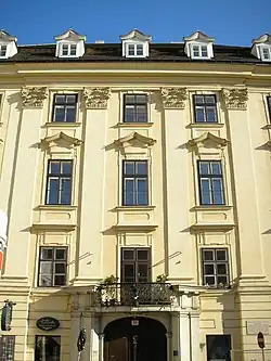 - Das späthistoristische Wohnhaus (Nr. 11) trägt eine vergoldete Türkenkugel aus der zweiten Türkenbelagerung am Portal und wurde 1882/83 erbaut, die Fassade 1933 von Otto Schönthal und Emil Hoppe umgestaltet. Um 2010 erfolgte ein Dachausbau in Anlehnung in den Kriegswirren verloren gegangenen historischen Proportionen.[16]