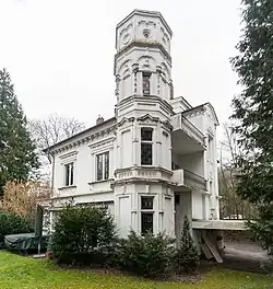 Das Gebäude steht als Solitär und eines von zwei Häusern an der Straße in einer großzügigen, dichtbewachsenen Parkanlage mit älterem Baumbestand. Es ist zweigeschossig und von einem Krüppelwalmdach bedeckt. Die Villa weist Schmuckformen – darunter stuckierte Konsolen am Dachgesims – auf, die sich der Neorenaissance zuordnen lassen. Der Sockel ist in Bänderputz mit einer rustizierten Eckquaderung ausgeführt. Das Obergeschoss verfügt über einen Balkon und breite, rechteckige Erker mit Rundbogenfenstern. Im Südwesten wird die Villa von einem über die Traufkante hinausragenden polygonalen Erkerturm abgeschlossen. Der Eingang befindet sich traufseitig und ist von einer Freitreppe eingefasst.