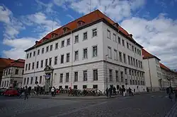 Landgericht Lüneburg | Das Haus wurde von 1696 bis 1700 anstelle von Bürgerhäusern erbaut. Es ist ein dreigeschossiges Haus mit 13 Achsen und einem Mansarddach. Der Eingang befindet sich in der mittleren Achse, davor ist eine Freitreppe. | 30649951 |