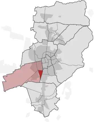 ![]() Lage des Bezirks „Am Südbahnhof“ innerhalb von Darmstadt