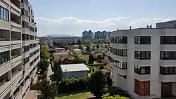 Die einzelnen Baublöcke des nördlichen Teils sind in einem quadratischen Raster angeordnet und um Höfe gruppiert. Die Bebauung folgt der im Geviert angeordneten Hofstruktur, wobei jeder Hof mit jenen der anderen Ringe in den Erschließungsachsen durch Lauben- bzw. Durchgänge und Wege verbunden ist. Die neungeschoßigen Gebäudeblöcke sind an ihrem höchsten Punkt an den Schmalseiten abgetreppt, wodurch nord- und südseitige Terrassen entstehen. Die Wohnungen an den in Ost-West-Richtung ausgerichteten Längsseiten verfügen hingegen über mit Blumentrögen ausgestattete Loggien.[1]