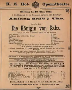 Materna debütierte 1869 höchst erfolgreich als Selica in Giacomo Meyerbeers L’Africaine im neuen Haus am Ring und löste Marie Louise Dustmann-Meyer als erste dramatische Sopranistin ab.