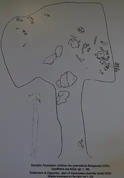 Die mykenischen Kammergräber stammen aus der Mitte des Späthelladikums III. Es handelt sich um die Ruhestätten von einfachen Menschen.