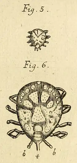 - ↑ a b Carl de Geer: Second mémoire. Des mittes et des faucheurs. In: Mémoires pour servir à l’histoire des Insectes. Tomé 7. Pierre Hesselberg, Stockholm 1778, S. 83–175, S. 160-161, Tafel 38, Fig. 5-6 (Digitalisat).