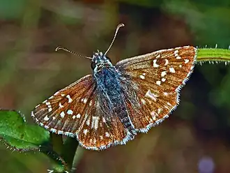 | Ambossfleck-Würfel-Dickkopffalter | ||||||||||||