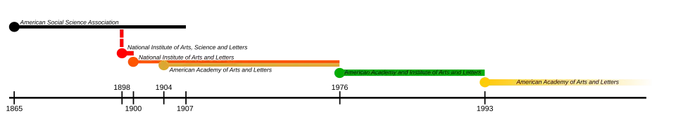 Die Gesellschaft ging aus der 1865 in Boston gegründeten American Social Science Association (ASSA) hervor. Diese umfasste mehrere Abteilungen wie Rechtsprechung oder auch Ausbildung. H. Holbrook Curtis, eines der Mitglieder unterbreitete im September 1898 dem ASSA-Präsidenten Simeon Baldwin den Vorschlag, eine Tochtergesellschaft zu gründen, die sich in ihrer Ausrichtung und Organisation am Institut de France orientieren sollte. Die Idee wurde von der Organisation genehmigt und nachdem viele der Einladungen akzeptiert worden waren, fand schon am 11. Februar 1899 die erste Versammlung des neu gegründeten National Institute of Arts, Science and Letters statt, auf der Charles Dudley Warner zum vorläufigen Präsidenten gewählt wurde. Im September desselben Jahres entschied die Gesellschaft darüber, ob man weiterhin eine Unterabteilung der ASSA bleiben oder ein selbstverwaltender Apparat werden sollte. Die Mitglieder entschieden sich für letzteres und im Zuge dessen strich man science aus der Bezeichnung.