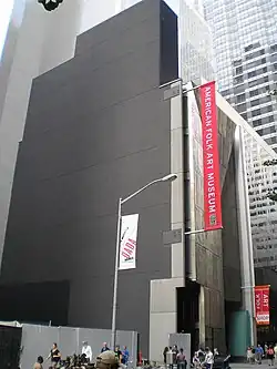 Der 2001 eröffnete Neubau des Museums mit einer markanten Fassade wurde von dem New Yorker Architektenehepaar Tod Williams Billie Tsien Architects geplant. Er lag in direkter Nachbarschaft zum Museum of Modern Art (MoMA), welches das Grundstück bereits 2011 dem an Geldmangel leidenden Museum abgekauft hatte. Das Gebäude wurde 2014 abgerissen und durch eine Erweiterung des MoMA überbaut (Entwurf Ricardo Scofidio und Liz Diller). MoMA hatte sich auch nach Protesten für den Abriss entschieden, da das Design nicht zu dem des MoMA passe. Vor dem Abriss waren 63 Paneele, aus denen die Fassade des American Folk Art Museums bestanden hatte, entfernt und eingelagert worden.[5] Das American Folk Art Museum zog nach dem Verkauf wieder an den vorherigen Standort am Lincoln Square zurück.