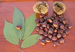 Sie sind ein wenig kleiner und breiter als die der Edelkastanie. Sie können am besten anhand der größeren und regelmäßig weiter auseinander liegenden Sägezahnung am Blattrand bestimmt werden, wie der wissenschaftliche Name dentata – lateinisch für „gezähnt“ – andeutet.