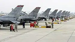 US-amerikanische F-16C-Kampfflugzeuge während eines Manövers in Bulgarien 2010