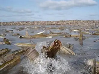 - ↑ Stefan Nehring, Heiko Leuchs: Neozoa (Makrozoobenthos) an der deutschen Nordseeküste: Eine Übersicht. Bundesanstaltung für Gewässerkunde, Bericht BfG-1200 ( des vom 13. Oktober 2007 im Internet Archive) Info: Der Archivlink wurde automatisch eingesetzt und noch nicht geprüft. Bitte prüfe Original- und Archivlink gemäß Anleitung und entferne dann diesen Hinweis., Koblenz 1999, S. 47.