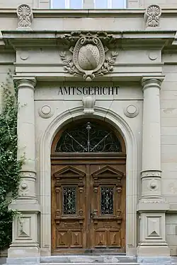 Das Gerichtsgebäude an der Bahnhofstraße 8 wurde Anfang der 1890er Jahre nach Plänen des badischen Baudirektors Josef Durm im Stil der Neorenaissance errichtet[2] und schließlich 1892 als Großherzogliches Amtsgericht eingeweiht. Das heute denkmalgeschützte Gebäude besteht aus einem zweigeschossigen, mit Säulenportal geschmückten, Hauptbau aus Mauerziegel. Westlich vom Hauptbau ist in einem eingeschossigen Anbau ein Gerichtssaal untergebracht. Bevor dieses Gerichtsgebäude entstand, wechselte das Amtsgericht mehrmals die Gebäude in Überlingen: bis 1892 war es in einem ehemaligen Patrizierhaus der Reichlin von Meldegg an der Gradebergstraße untergebracht (später Gewerbeschule, heute städtische Musikschule), davor befand es sich als Bezirksstrafgericht samt Gefängnis im alten Überlinger Franziskanerkloster und Anfang des 19. Jahrhunderts, nach der Gründung des Bezirksamtes Überlingen, im Rathaus der Stadt.