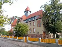 Im Jahre 1910 wurde zur Eröffnung des Amtsgerichtes auch ein Amtsgerichtsgebäude (heutige Adresse: Straße der Jugend 5) erbaut.[3] Das Gerichtsgebäude ist ein zweigeschossiger, asymmetrisch gegliederter Baukörper mit Putzfassade und Porphyrtuffelementen. Es hat ein hohes, ausgebautes Walmdach, an der Straßenfront mit abgewalmtem Zwerchgiebel, darüber ein Uhrentürmchen mit geschwungener Haube, links einen Eckturm mit skulptiertem Portal. Als Architekten und Bauleiter wurden genannt: Edmund Waldow, Heinrich Tscharmann und M. Zettler.