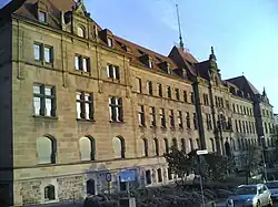 Bis 1909 befand sich das Amtsgericht im Gebäude Neckarhalde 30b, das bald zu klein für den wachsenden Gerichtsbetrieb wurde. So begann man 1903 an der Kaiserstraße, der heutigen Doblerstraße, mit dem Bau eines gemeinsamen Justizgebäudes in Formen der Neorenaissance. Am 9. Oktober 1905 wurde es feierlich eingeweiht, die Baukosten betrugen mehr als eine Million Mark. Alle Tübinger Justizbehörden wurden dort untergebracht und nahmen am 16. Oktober 1905 den Dienstbetrieb auf.[3] Noch heute ist das Amtsgericht gemeinsam mit dem Landgericht Tübingen im Justizgebäude Doblerstraße 14 untergebracht. Staatsanwaltschaft, Notariat und Grundbuchamt sind ausgelagert.