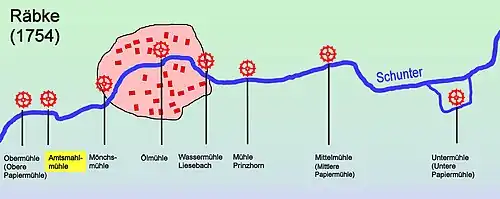 - Förderverein Räbker Chronik: (Hrsg.): Die Amtsmahlmühle in: Räbke. Ein Dorf am Elmesrand, Helmstedt, 2005, S. 27–28