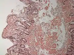 Die Amyloidose (von altgriechisch ἄμυλον ámylon „Kraftmehl, Stärke“)[1] ist eine variable Erkrankung mit Anreicherung von (zum Teil abnorm veränderten) Proteinen meist extrazellulär im Interstitium (Zwischenzellraum). Diese unlöslichen Ablagerungen liegen in Form kleiner Fasern, den Fibrillen (β-Fibrillen), vor und werden als Amyloid bezeichnet. Der Nachweis von Amyloid erfolgt durch mikroskopische Untersuchung von Gewebeproben, die zuvor mit Kongorot gefärbt wurden. Die Amyloidablagerungen erscheinen im Hellfeld hellrot, in polarisiertem Licht zeigen sie eine apfelgrüne Doppelbrechung.