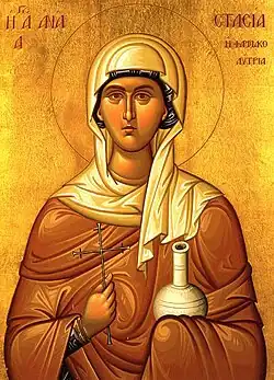 Der Gedenktag der heiligen Anastasia ist in der Westkirche am 25. Dezember, in der Ostkirche am 12. Oktober oder 22. Dezember, in der koptischen Kirche am 5. Januar.