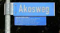 Andor Ákos war das erste Todesopfer in der Stadt Kempten infolge der nazistischen Judenverfolgungen.[16] Im Jahr 1990 erhielt im Kemptener Stadtteil Eich die Straße, in der die vom Architekten 1938 erbauten Kirche Maria Hilf steht, den Namen „Ákosweg“.[17]